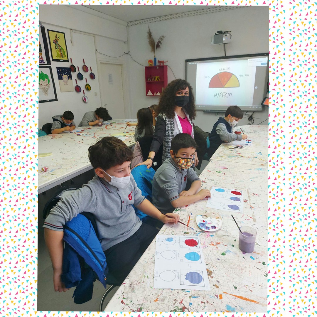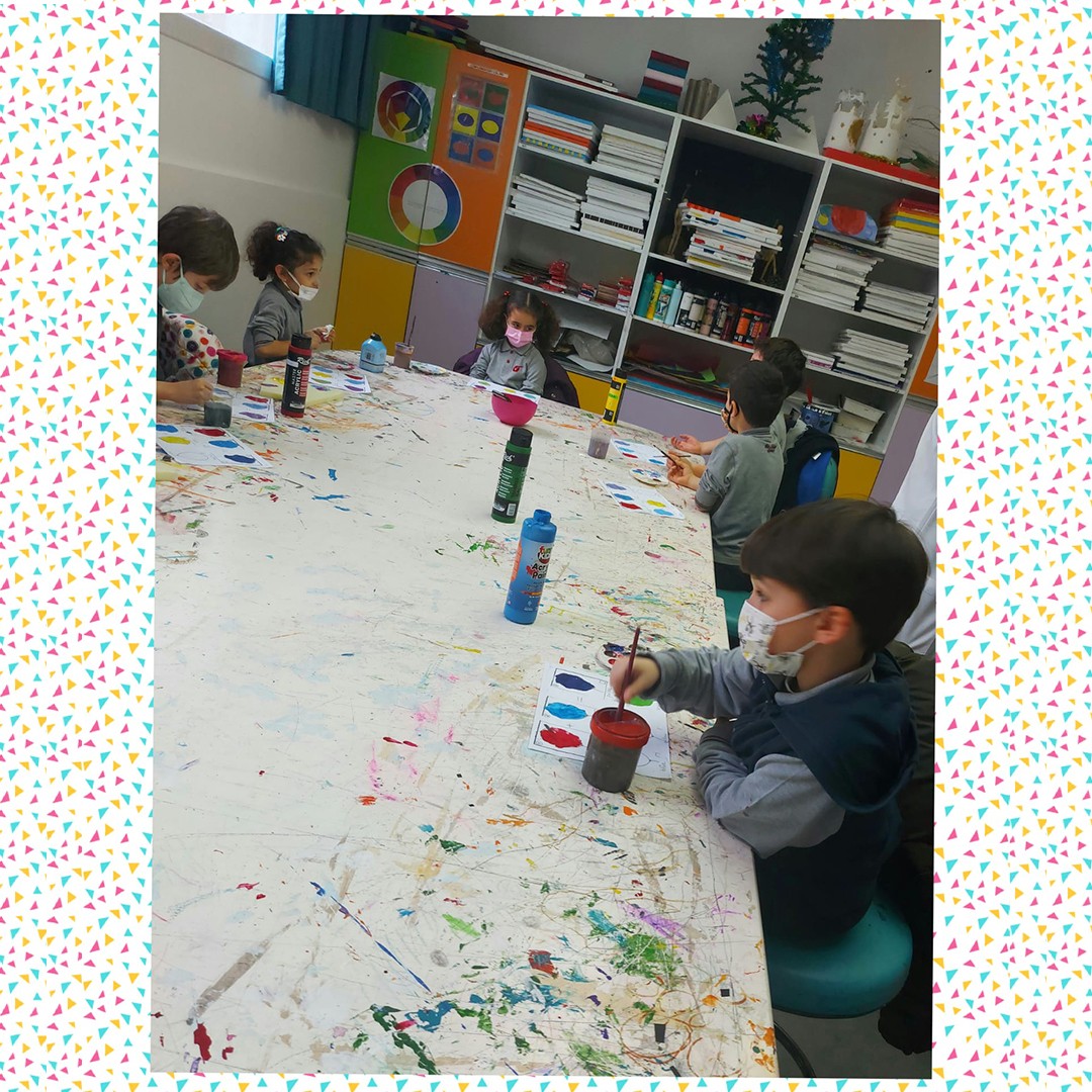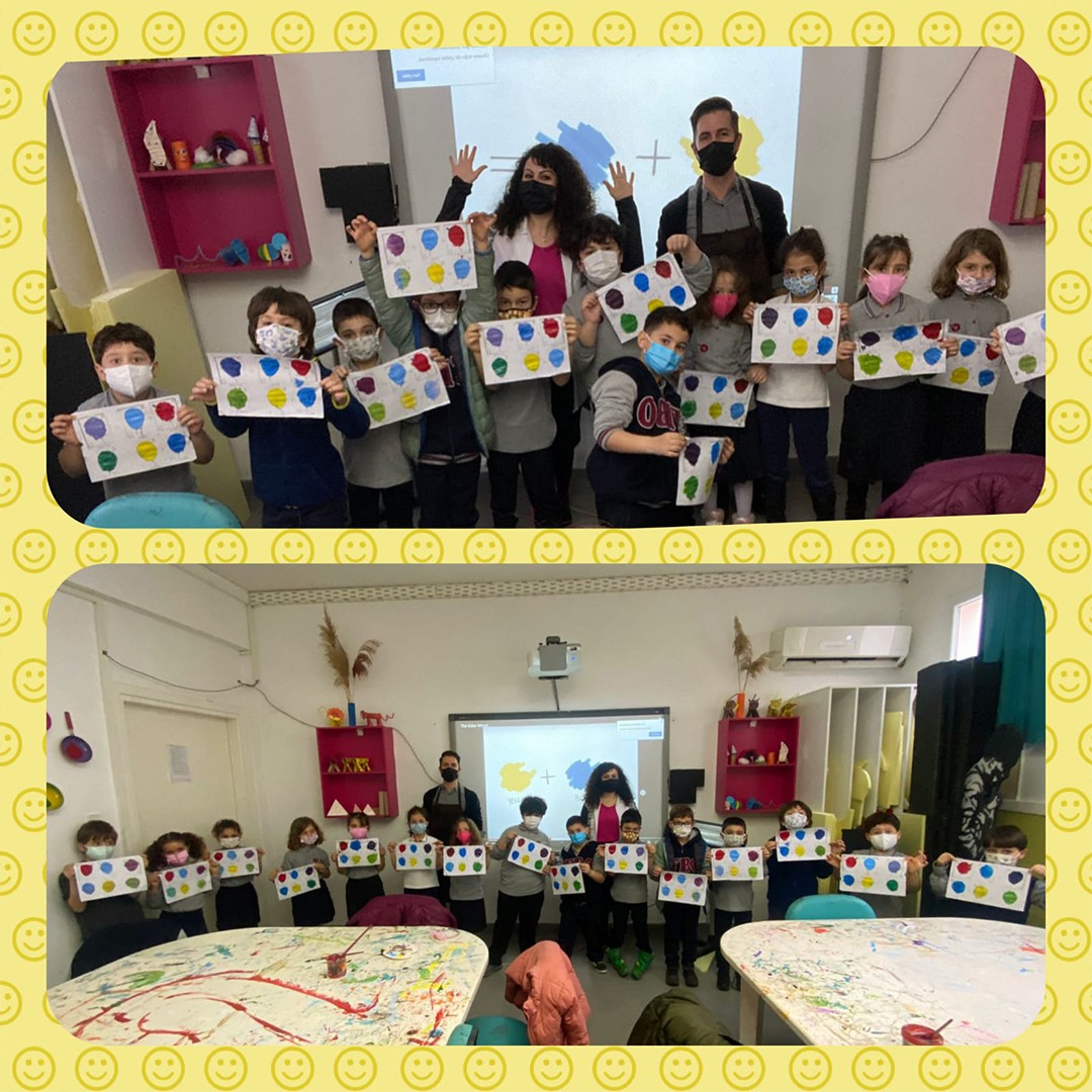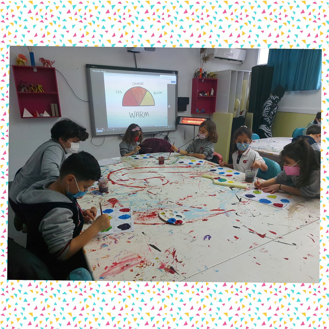 Okulumuzda İlkokul İngilizce derslerimizde CLIL ( İçerik Temelli Öğretim Modeli ile İngilizce dersinin diğer derslere entegre edilip disiplinler arası eğitim sağlanması) eğitimine önem veriyoruz. Bu kapsamda 1-A sınıfımız ile bu hafta İngilizce Main Course dersinde "primary and secondary colours (ana ve ara renkler)" konusunu öğrendik. Öğrencilerimiz, Görsel Sanatlar atölyesinde renkleri karıştırıp yeni renkler elde etmeyi öğrendi ve konuyla ilgili şarkılar söyleyip eğlenceli zaman geçirdi. Böylece İngilizce dersi, Görsel Sanatlar dersine entegre edilerek öğrencilerimizin çok yönlü gelişimi sağlanmış oldu.