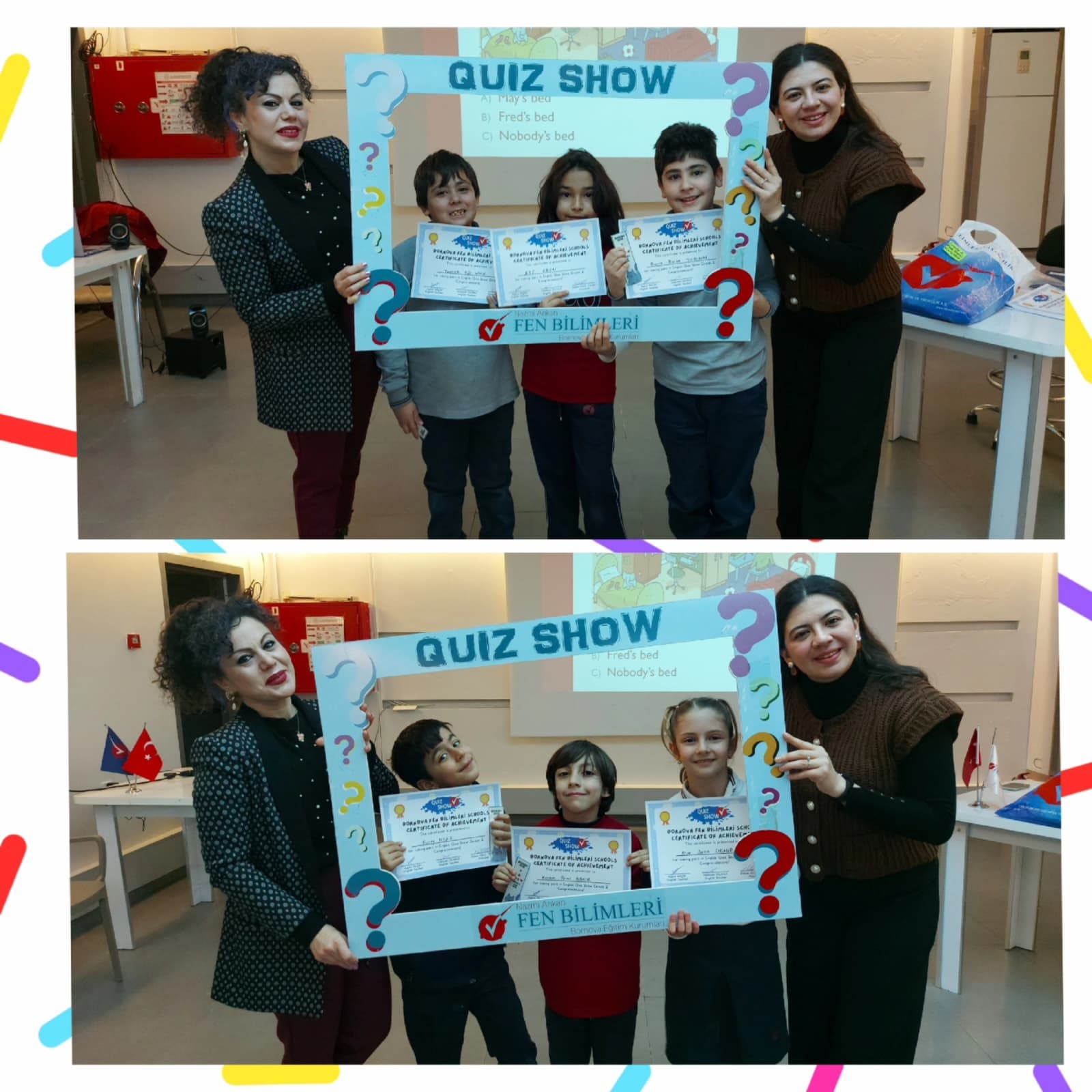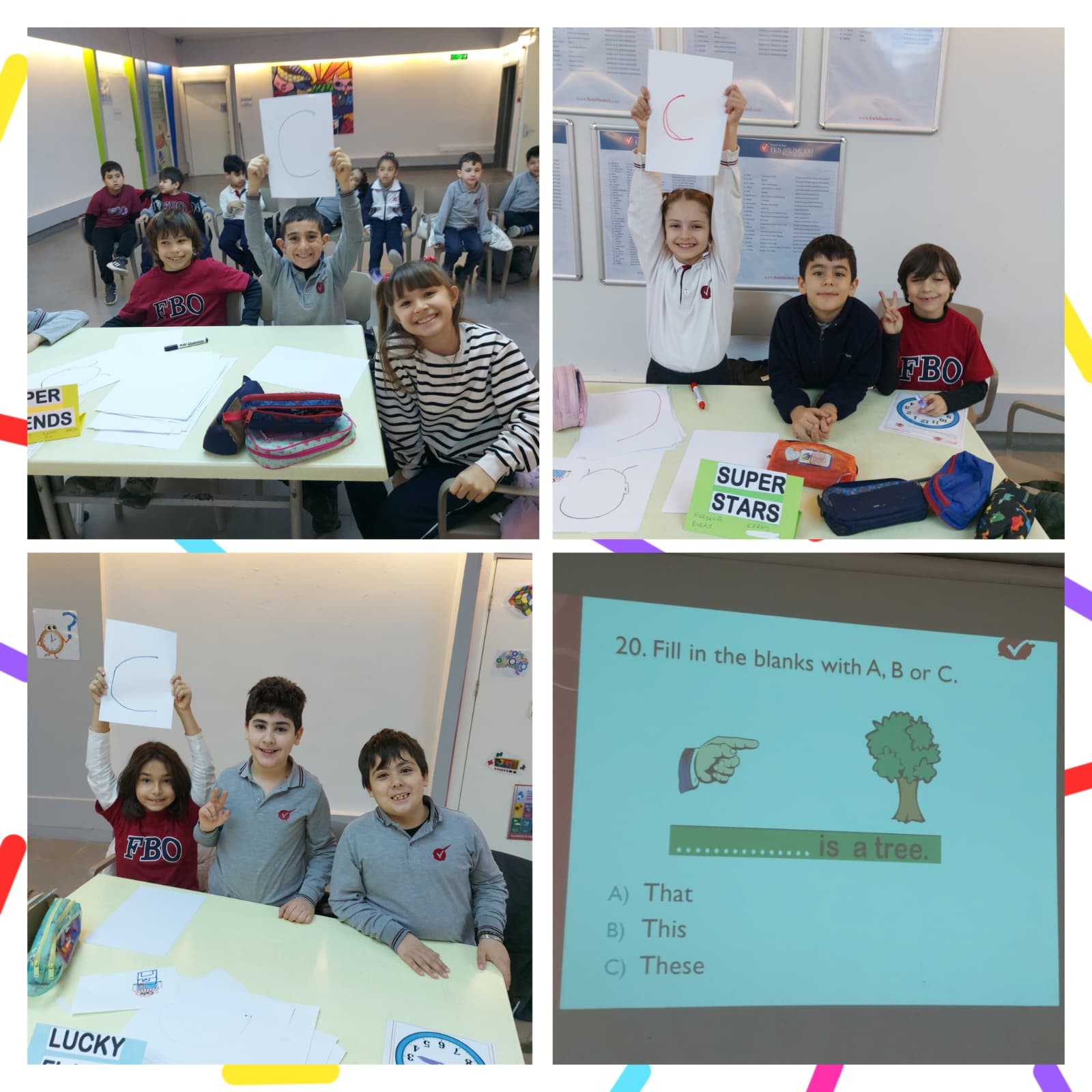 İlkokul 2.sınıf öğrencilerimizle birlikte gerçekleştirdiğimiz geleneksel "İngilizce Bilgi Yarışması (English Quiz Show)" etkinliğimizde, öğrencilerimizi 3 gruba ayırdık. "Super Friends" grubumuz en çok doğru cevabı vererek birinci olmuştur. Tum öğrencilerimizi tebrik eder, başarılarının devamını dileriz.