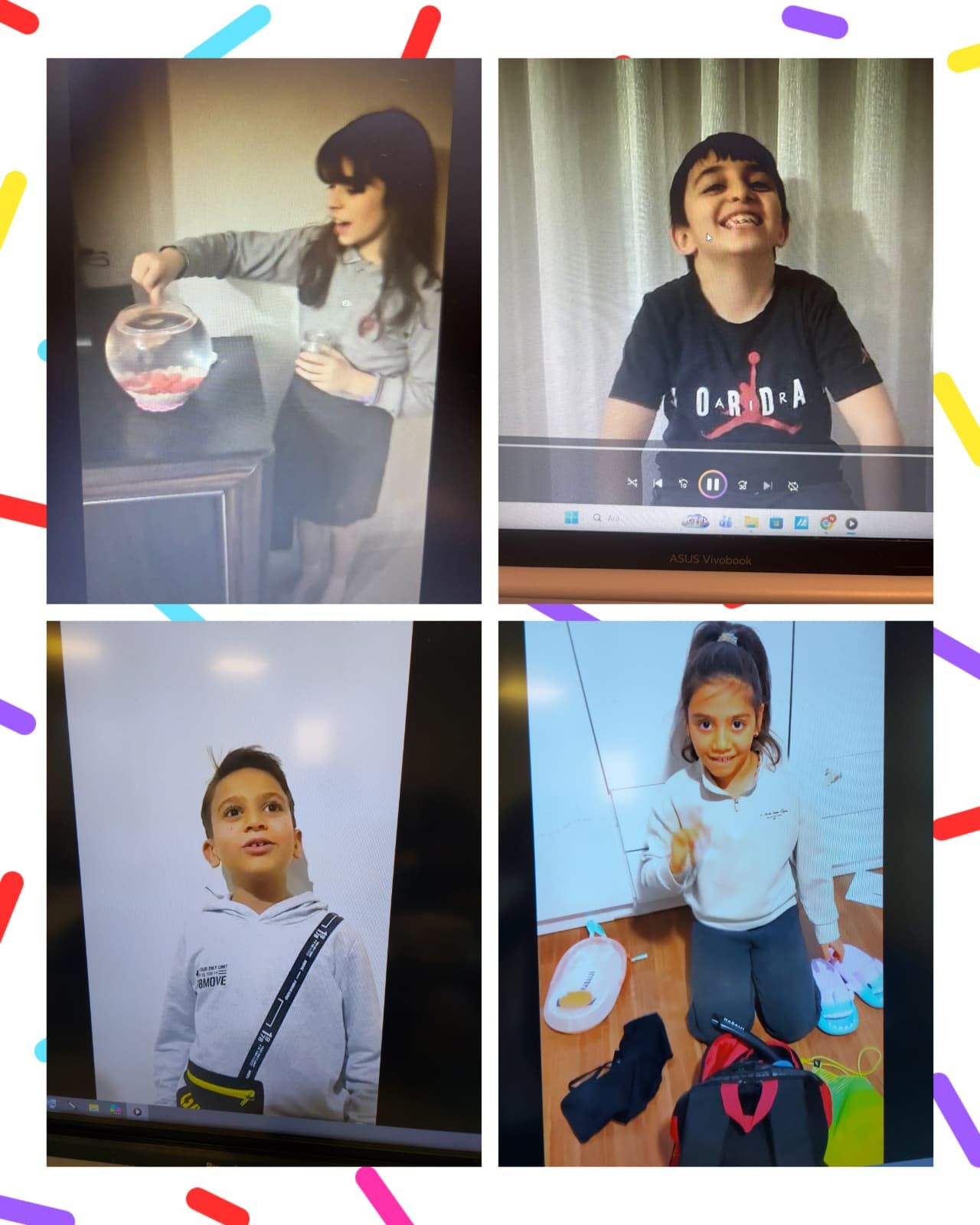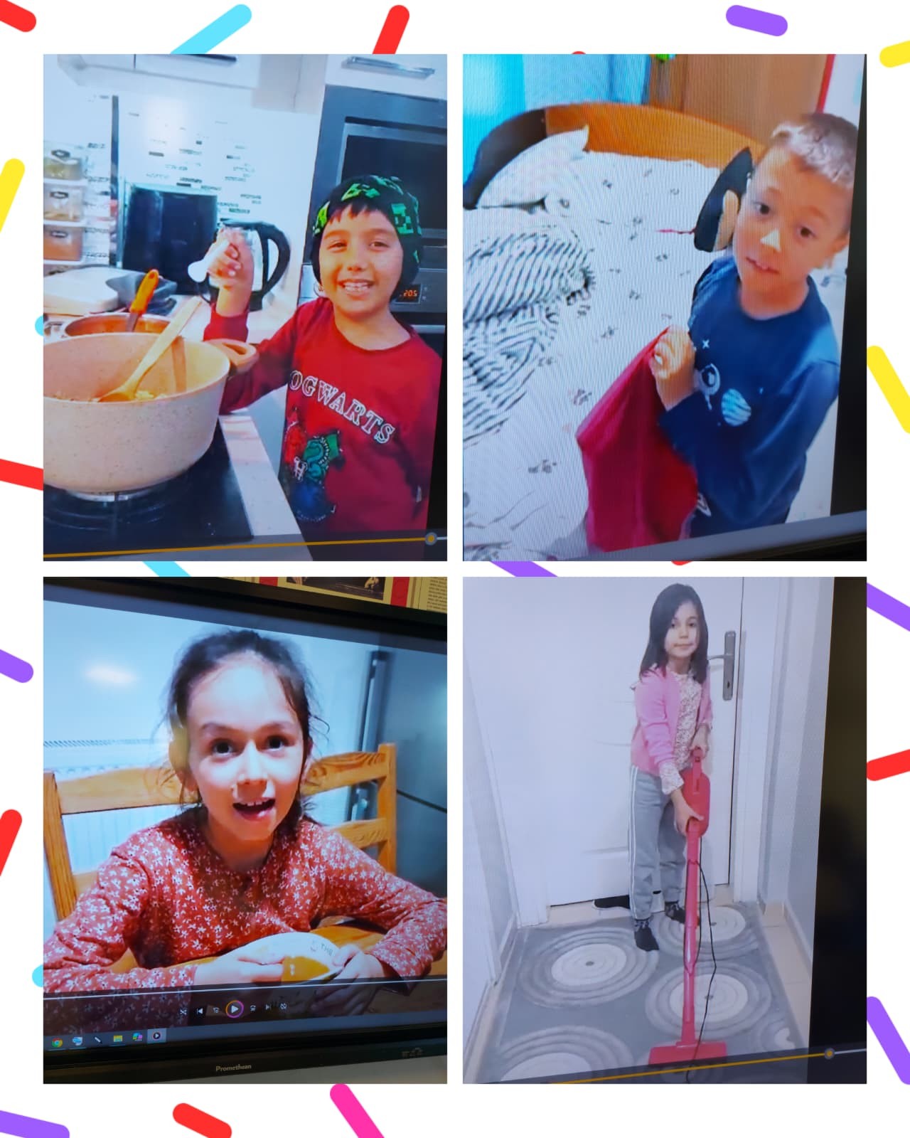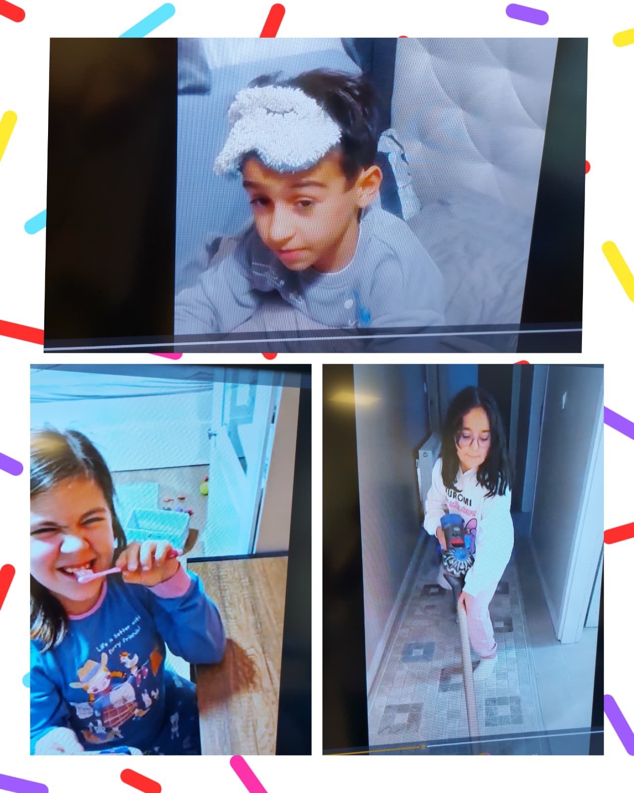 3.sınıf öğrencilerimiz İngilizce Main Course dersinde "daily tasks and routines (günlük yapılan rutinler ve ev işleri) ve time (saatler)" ünitesi kapsamında öğrenmiş oldukları konulari pekiştirmek için evde yaptıkları işleri gösterip cümleler kurarak videolar çektiler. Böylece hem konuyu pekiştirmiş oldular hem de eğlenceli zaman geçirmiş oldular.