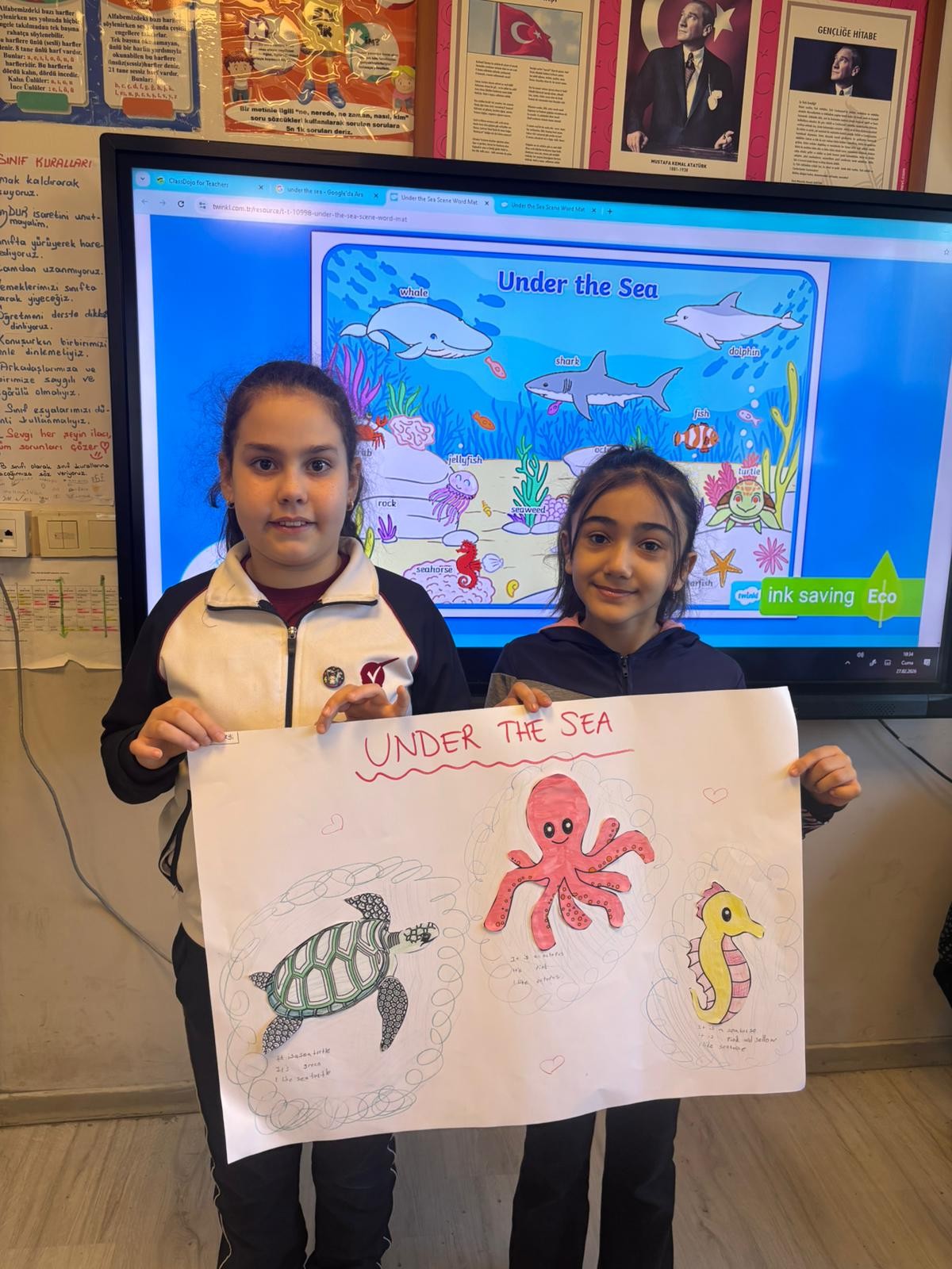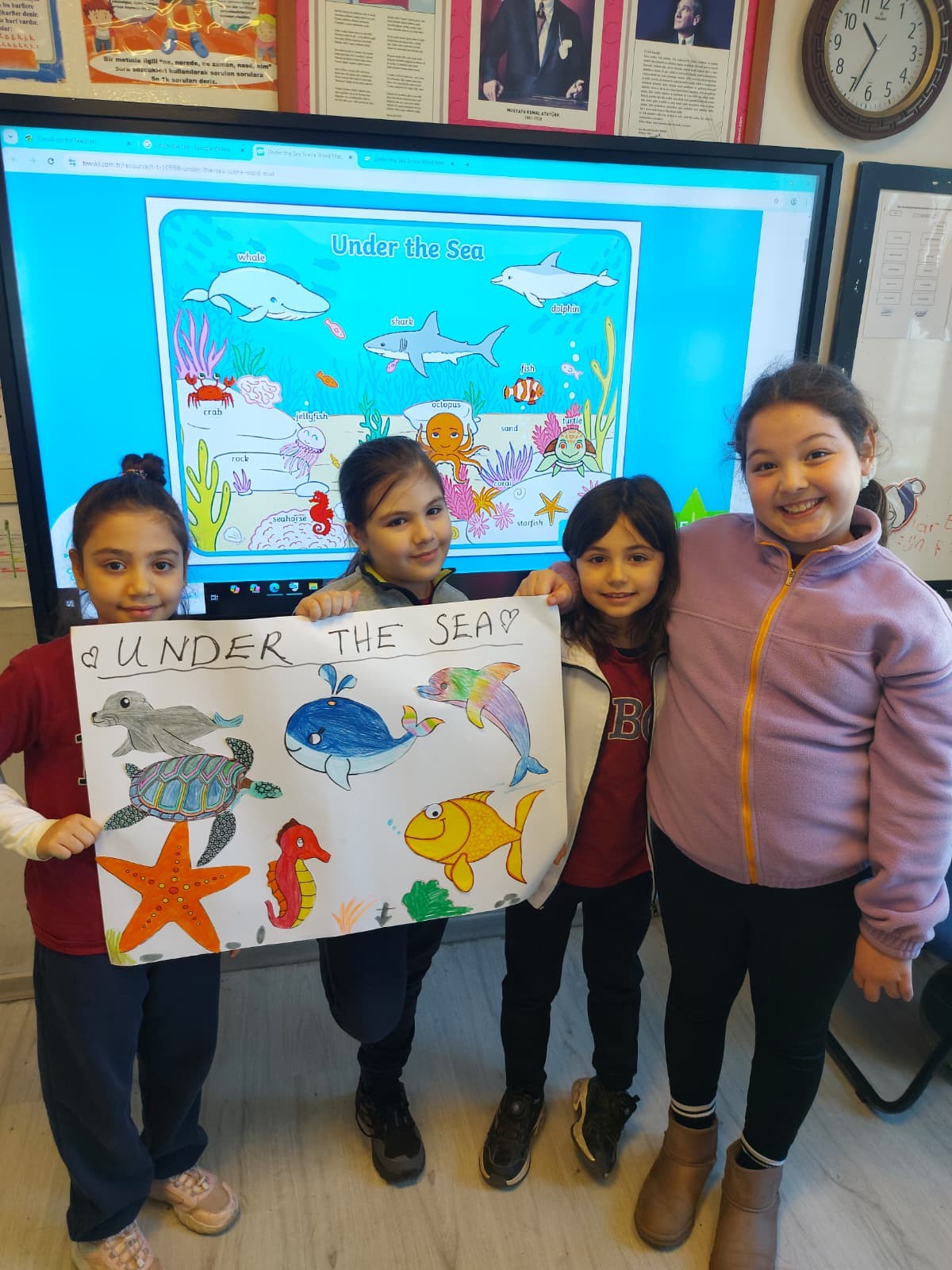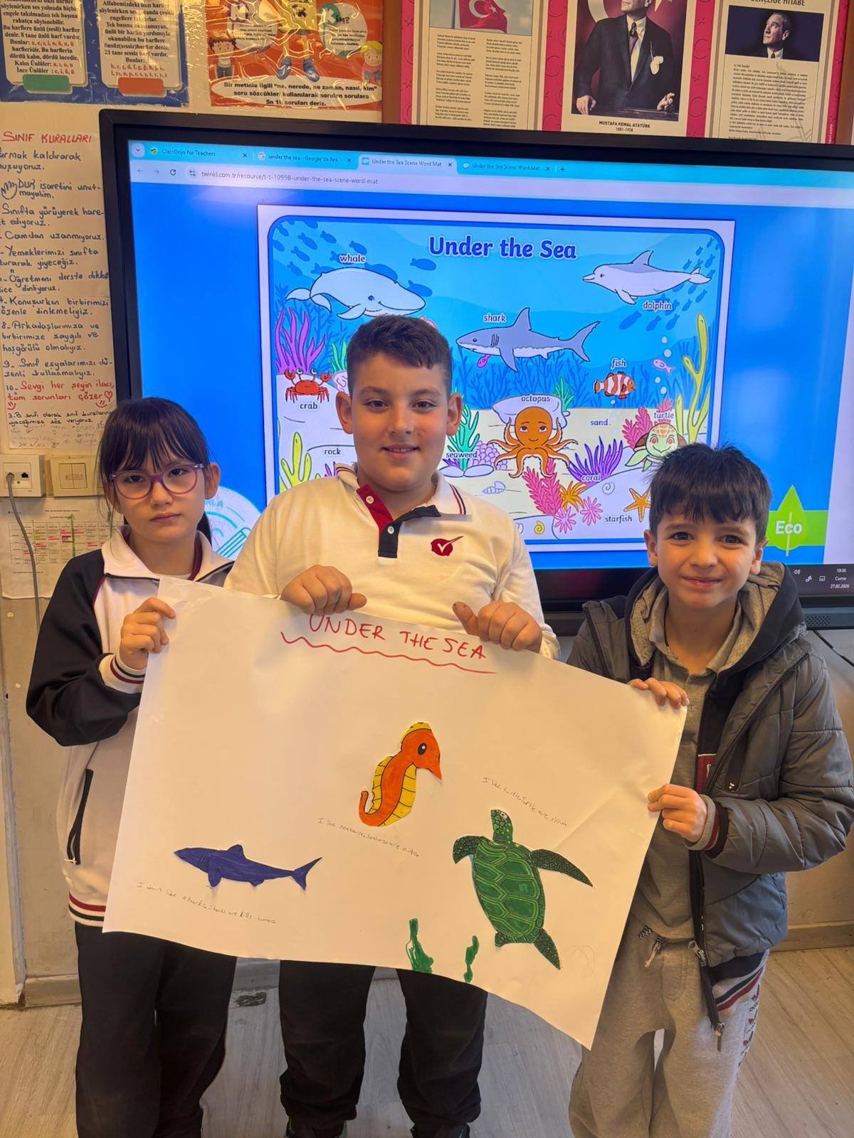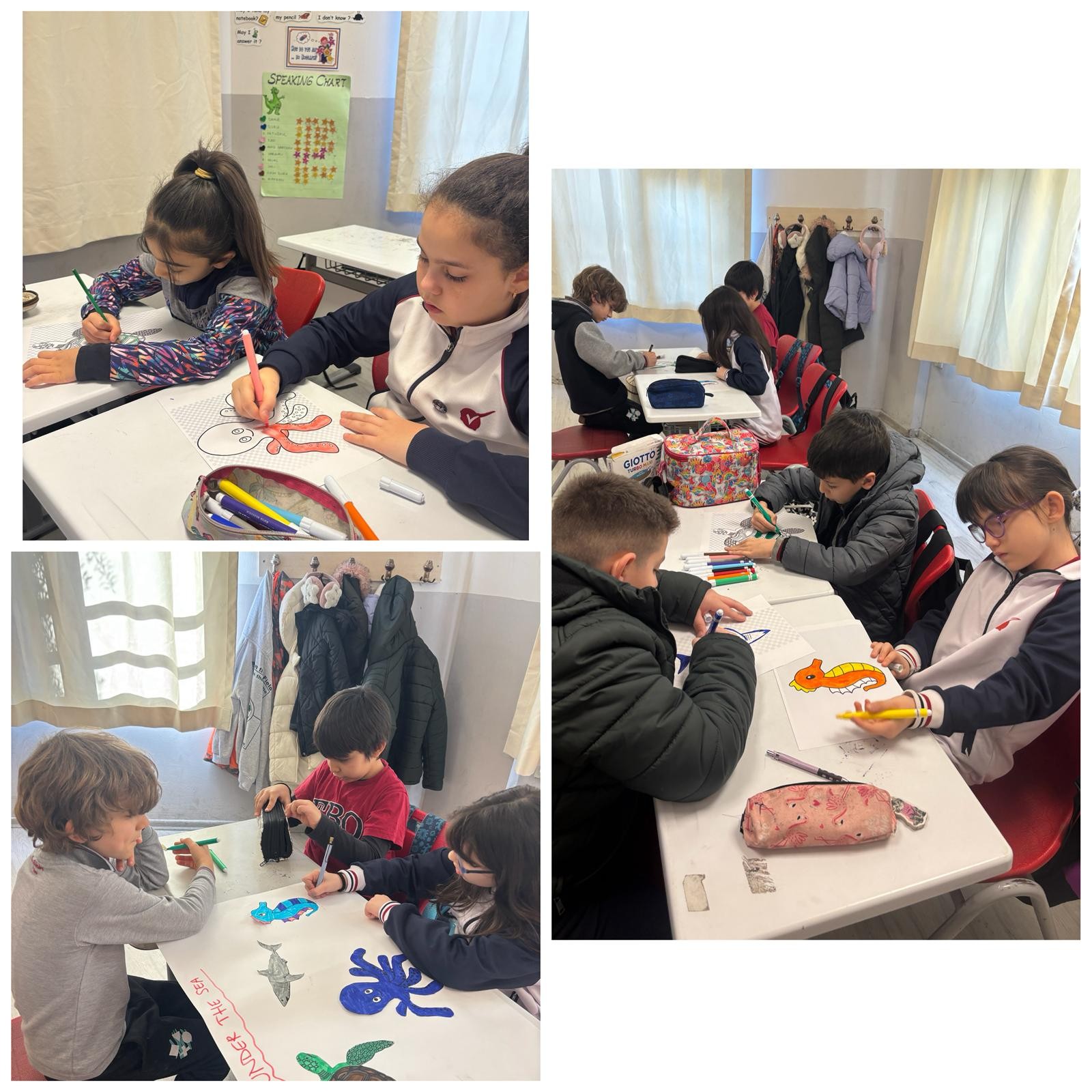 3. Sınıf öğrencilerimiz İngilizce Main Course dersinde "sea creatures (deniz canlıları)" konusu kapsamında gruplara ayrılarak istasyon çalışması yaptılar. Öğrencilerimiz en sevdikleri deniz canlılarını tanıtıp sunum yaptılar. Böylece konuyu eğlenceli bir şekilde pekiştirmiş oldular.