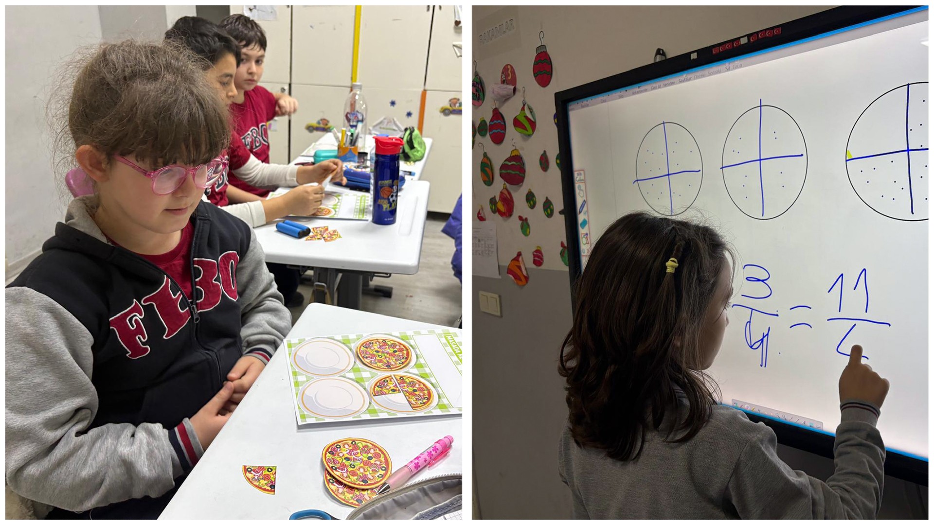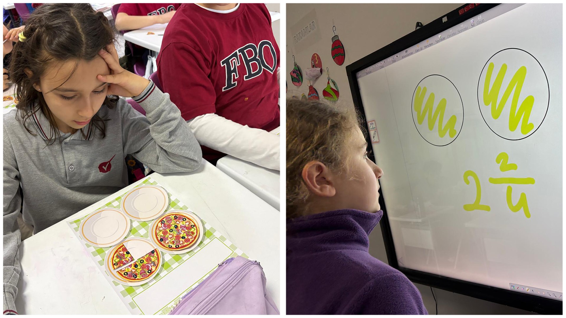 4. Sınıf öğrencilerimizle kesirler, kesir çeşitleri ve kesirlerin birbiriyle dönüşümlerini etkinliklerle daha kalıcı öğrenmelerine katkı sağladık. Eşit paylaştırdığımız keklerimiz ile birim kesir konusunu pekiştirip afiyetle keklerini yediler.