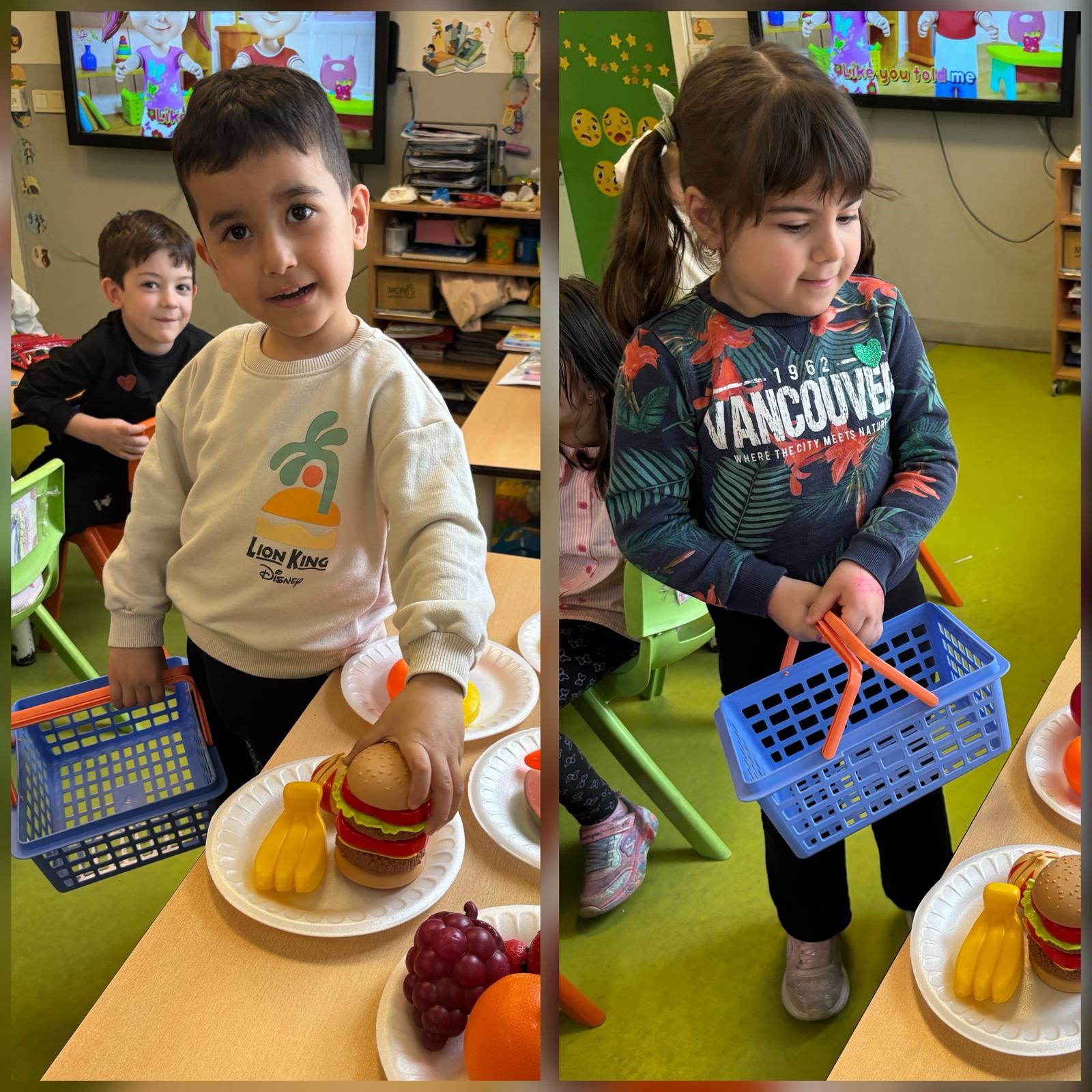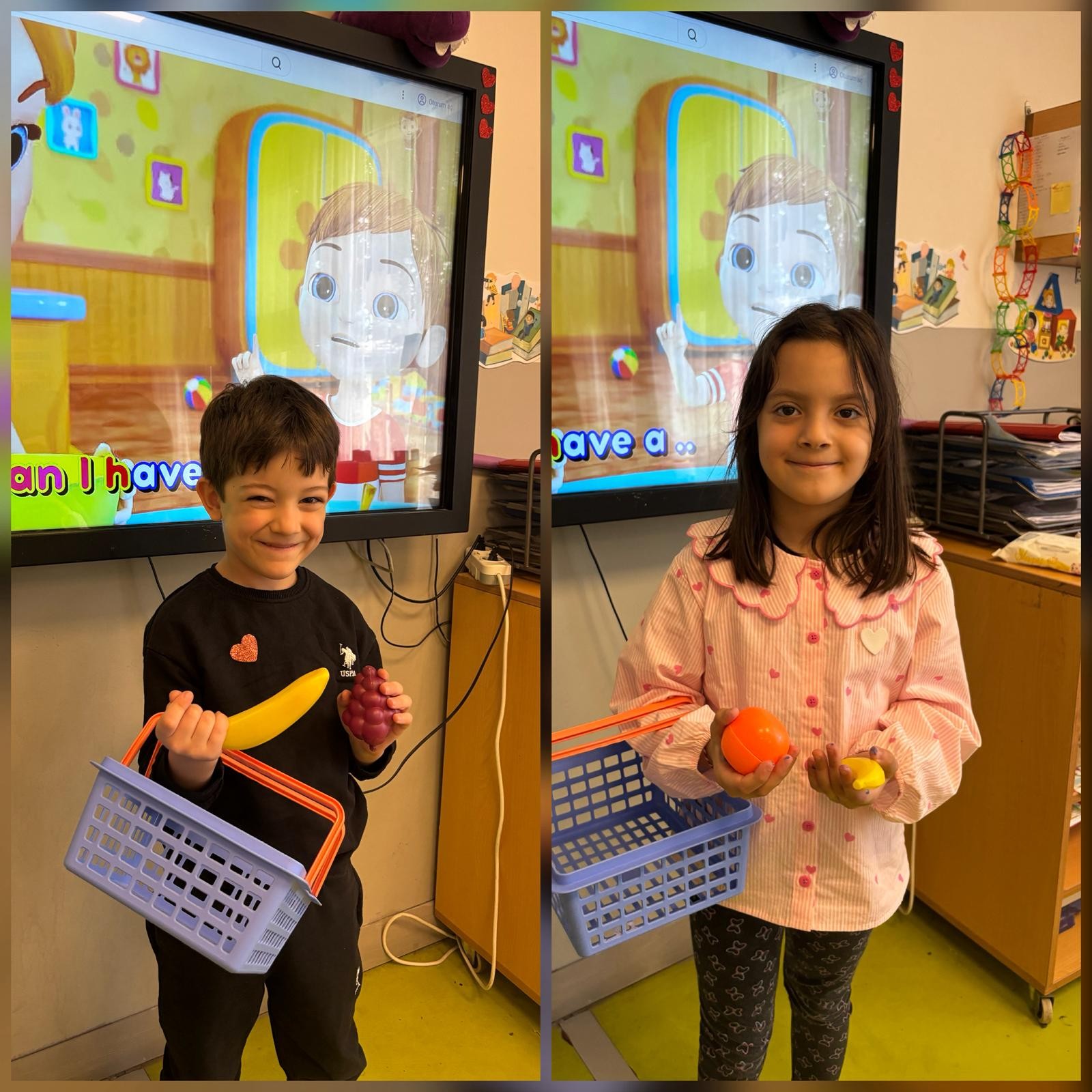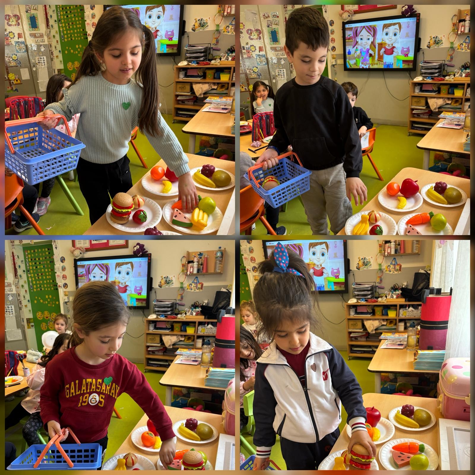 Anasınıfı öğrencilerimizle İngilizce Main Course dersimizde, “Food” (yiyecekler) ünitesi kapsamında öğrendiğimiz kelimeleri eğlenceli ve etkileşimli bir etkinlikle pekiştirdik. Öğrencilerimiz, sınıf içinde oluşturduğumuz küçük bir “market alışverişi” ortamında, hedef dil yapısı olan “Can I have…?” kalıbını aktif olarak kullanarak alışveriş diyalogları gerçekleştirdiler. Ardından da seçtikleri yiyeceklerle kendilerine güzel bir tabak hazırladılar ve öğrendikleri kelimeleri somutlaştırma fırsatı buldular.