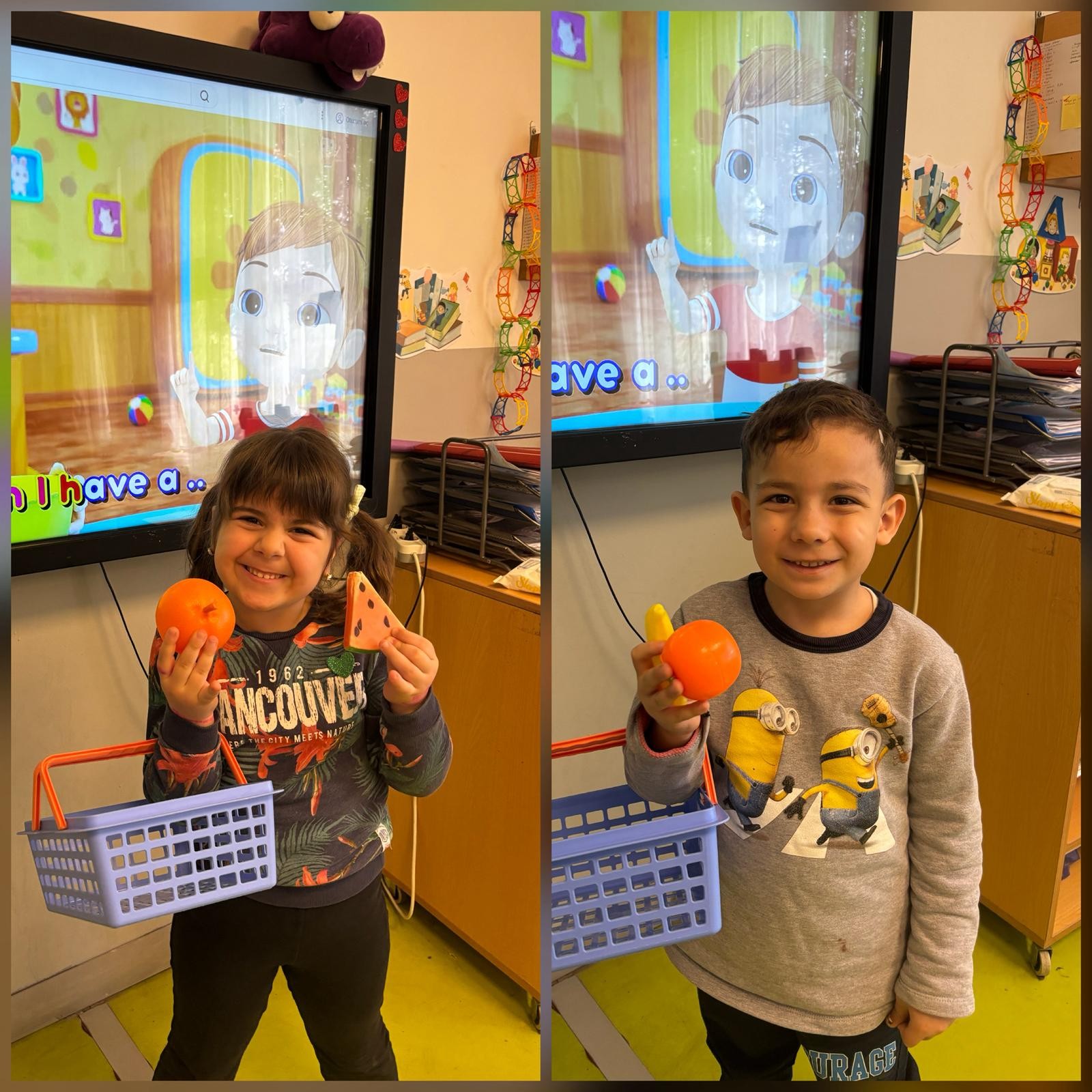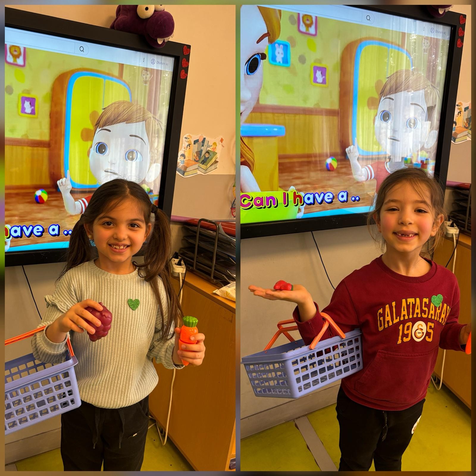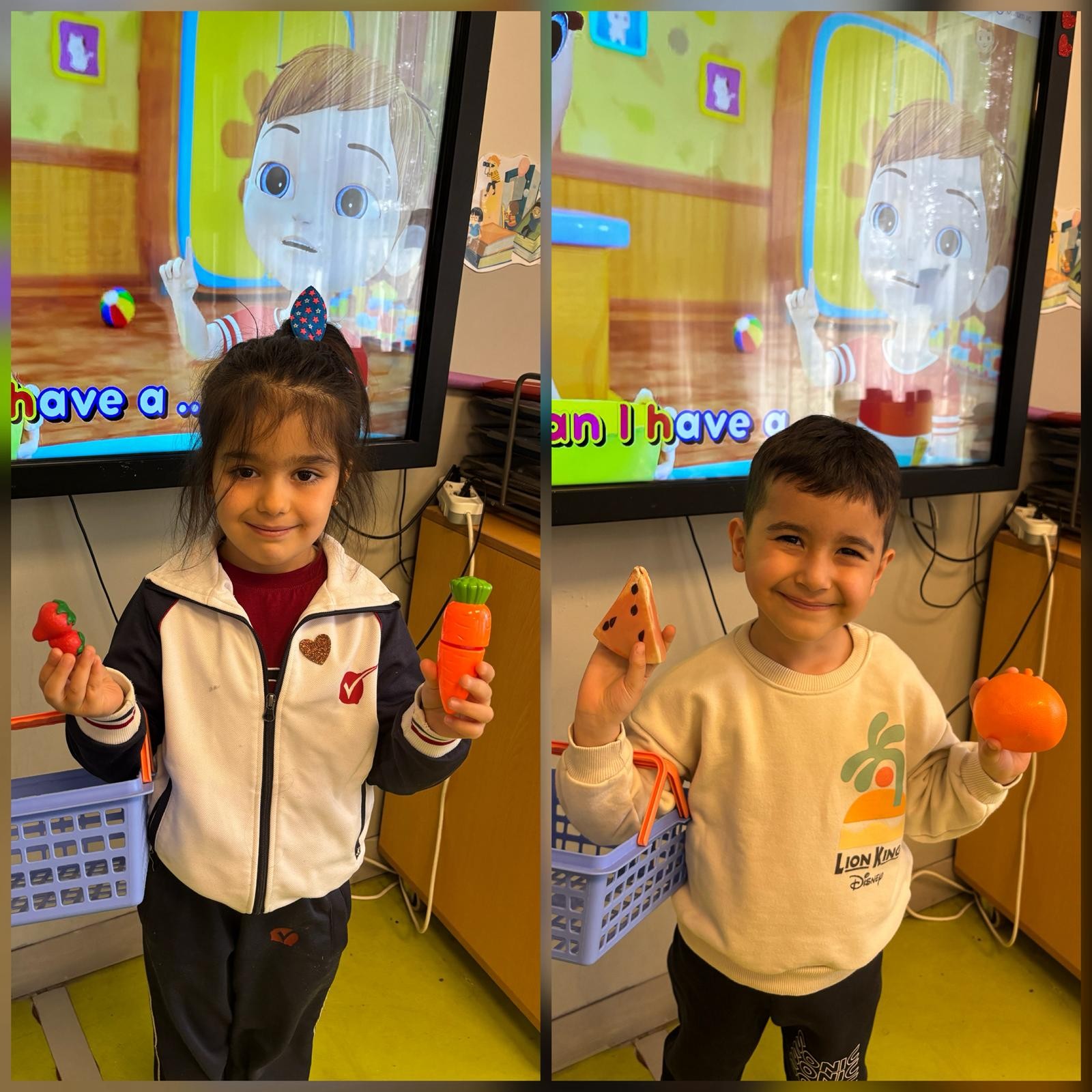 Anasınıfı öğrencilerimizle İngilizce Main Course dersimizde, “Food” (yiyecekler) ünitesi kapsamında öğrendiğimiz kelimeleri eğlenceli ve etkileşimli bir etkinlikle pekiştirdik. Öğrencilerimiz, sınıf içinde oluşturduğumuz küçük bir “market alışverişi” ortamında, hedef dil yapısı olan “Can I have…?” kalıbını aktif olarak kullanarak alışveriş diyalogları gerçekleştirdiler. Ardından da seçtikleri yiyeceklerle kendilerine güzel bir tabak hazırladılar ve öğrendikleri kelimeleri somutlaştırma fırsatı buldular.