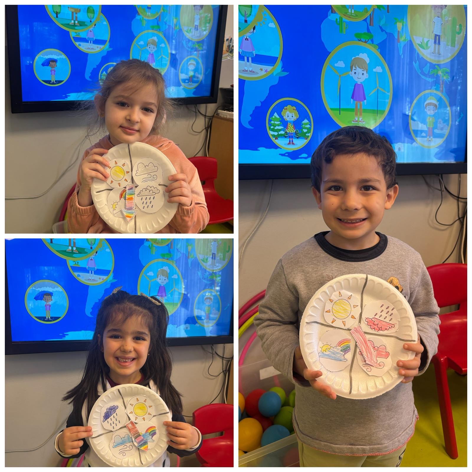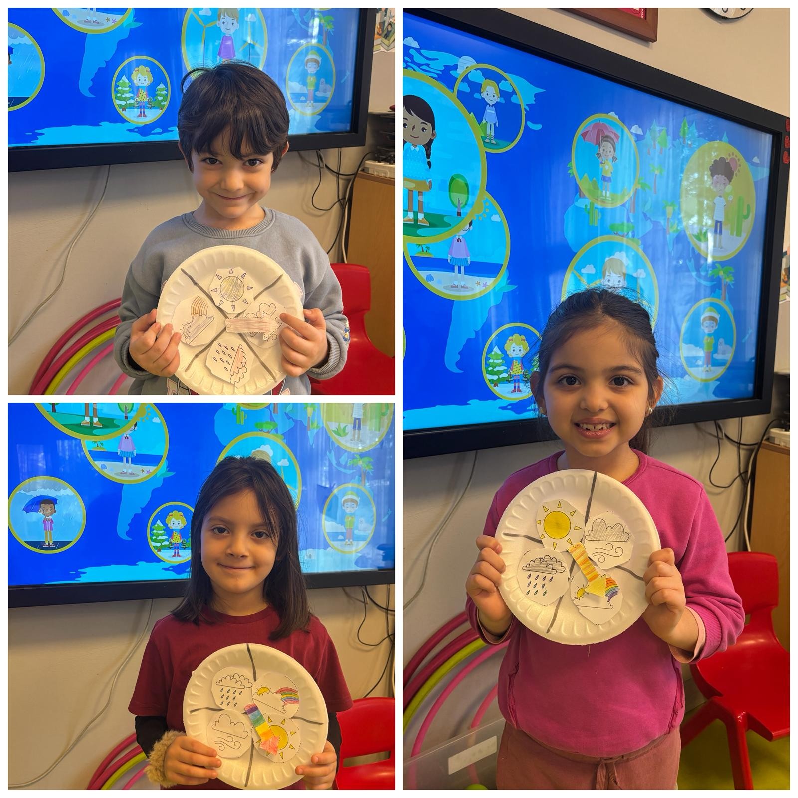 Anasınıfı öğrencilerimizle İngilizce Main Course dersimizde Weather Conditions (Hava Şartları) konumuz kapsamında eğlenceli ve öğretici bir etkinlik gerçekleştirdik. Çocuklarımız; sunny (güneşli), rainy (yağmurlu), windy (rüzgarlı) ve cloudy (bulutlu) kavramlarını inceleyip tanıyarak hem İngilizce kelime dağarcıklarını geliştirdiler hem de günlük yaşamla bağlantı kurdular. Ayrıca öğrendikleri kelimeleri kullanarak hava durumunu ifade ettiler. Böylece konumuzu eğlenerek pekiştirmiş olduk.