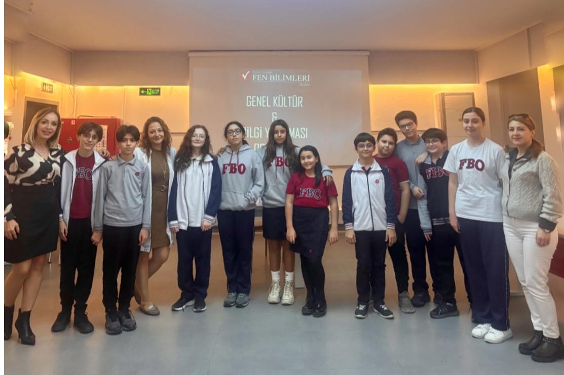 Fen bilimleri okulları arasında yapılan geleneksel bilgi yarışmasında, ortaokul öğrencileri arasında genel kültür ve bilgi yarışmasının ilk etabı gerçekleştirildi. 3 etap üzerinden toplanacak puanlamalarla kazanan takımımız İstanbul'da gerçekleşecek Türkiye geneli finallerine katılacaktır. Öğrencilerimize başarılar dileriz.
