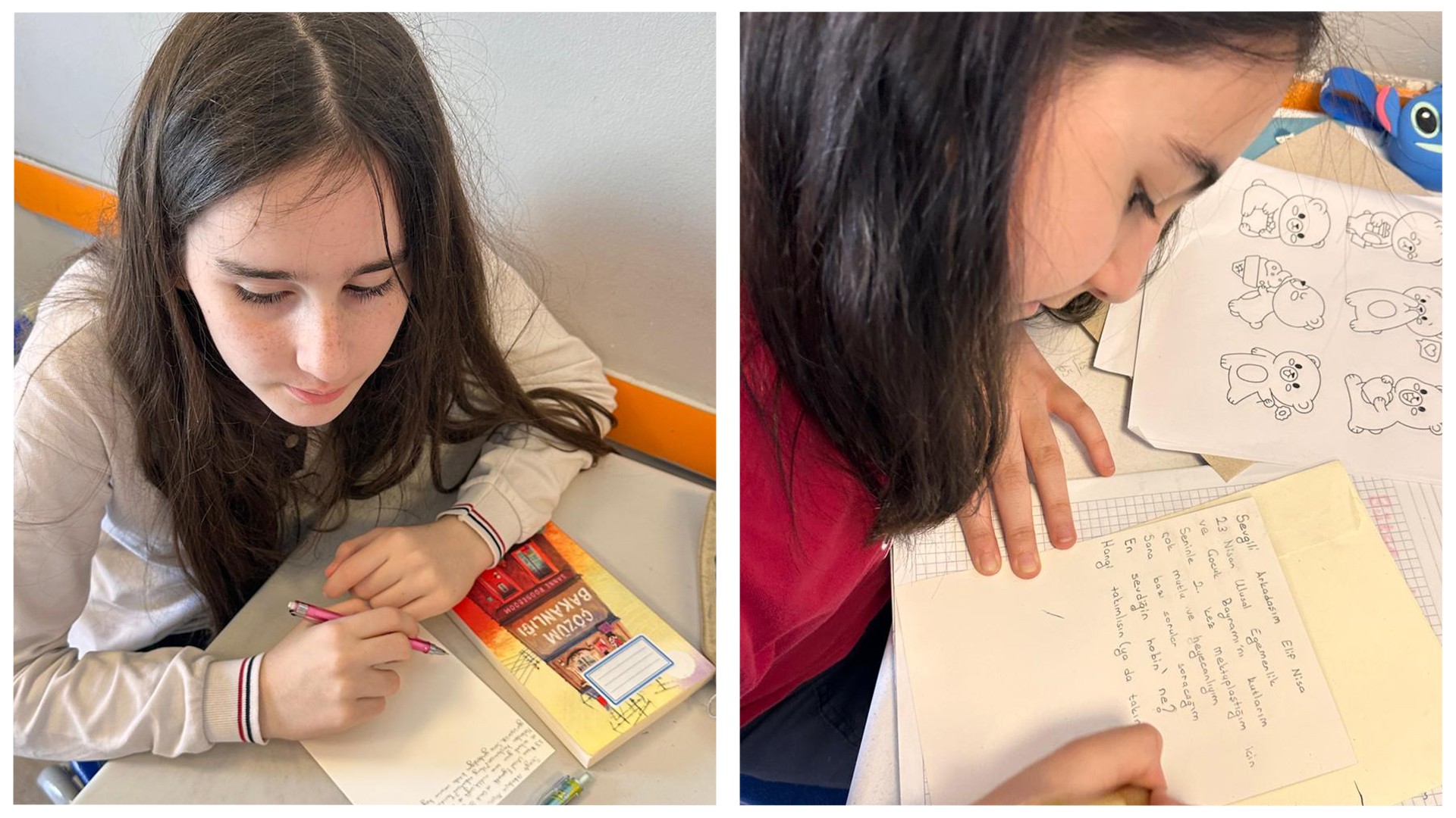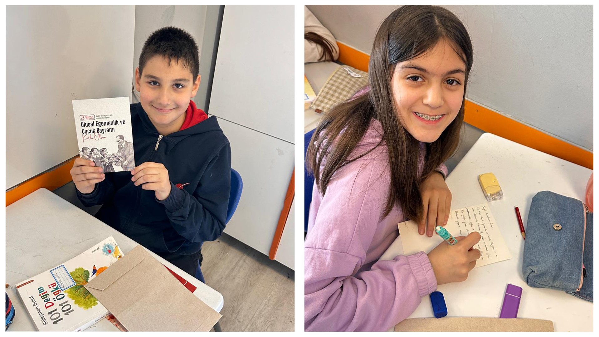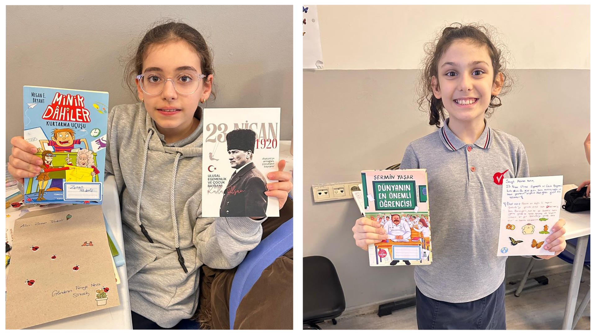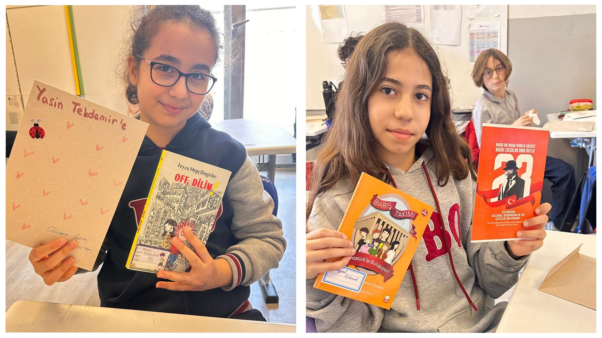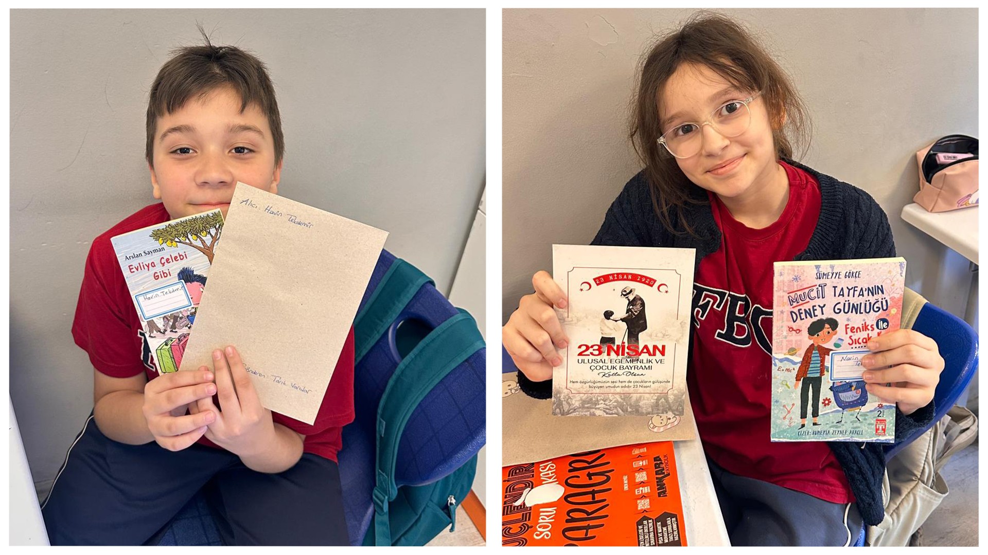 Kardeş okulumuzdaki arkadaşlarımız için içten duygularla kaleme aldığımız 23 Nisan kartpostallarımızı ve özenle seçtiğimiz kitapları sevgiyle yola çıkardık.