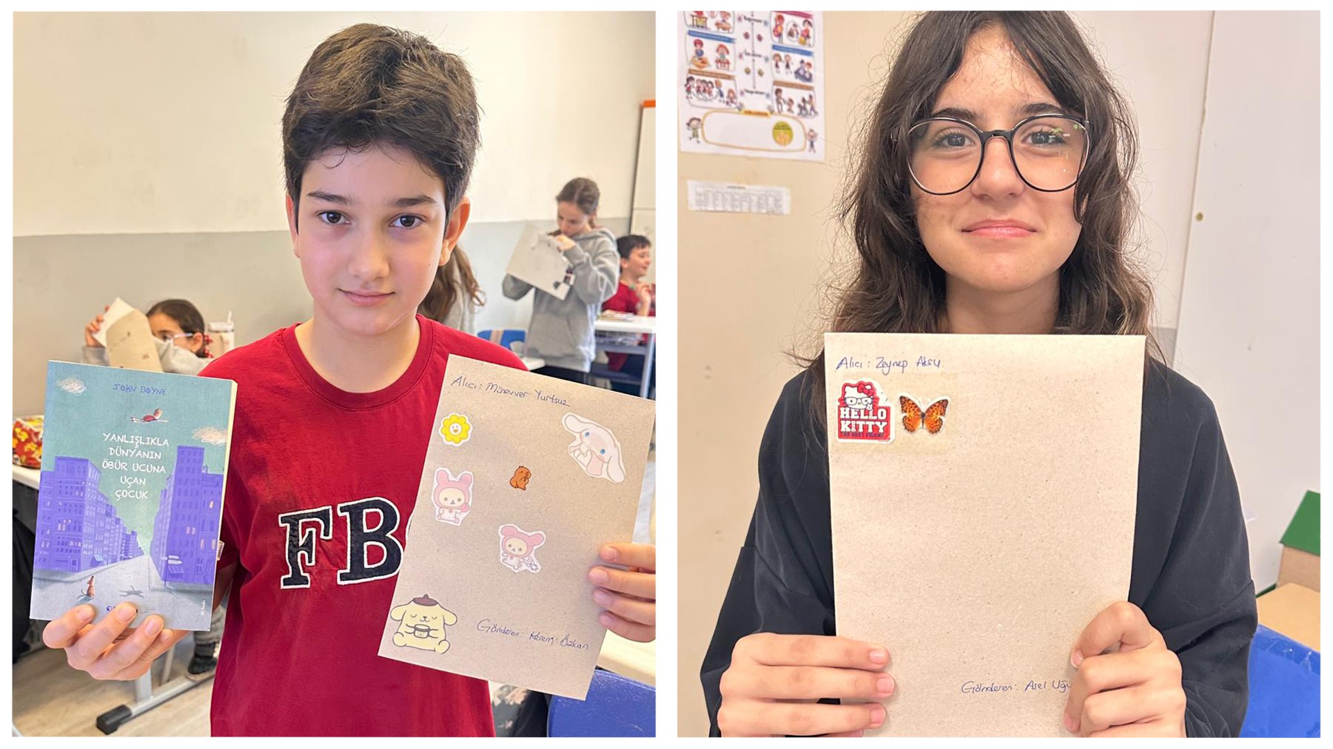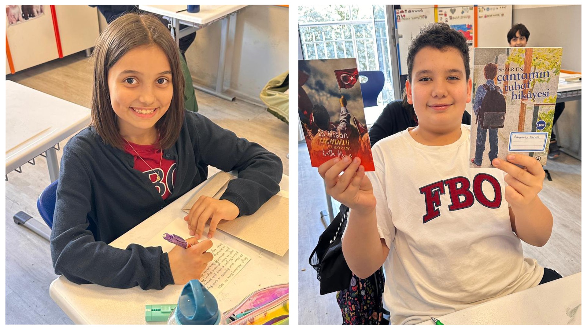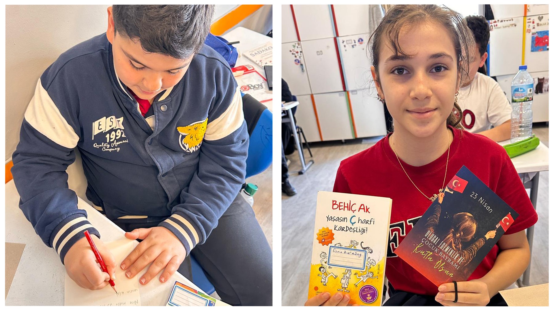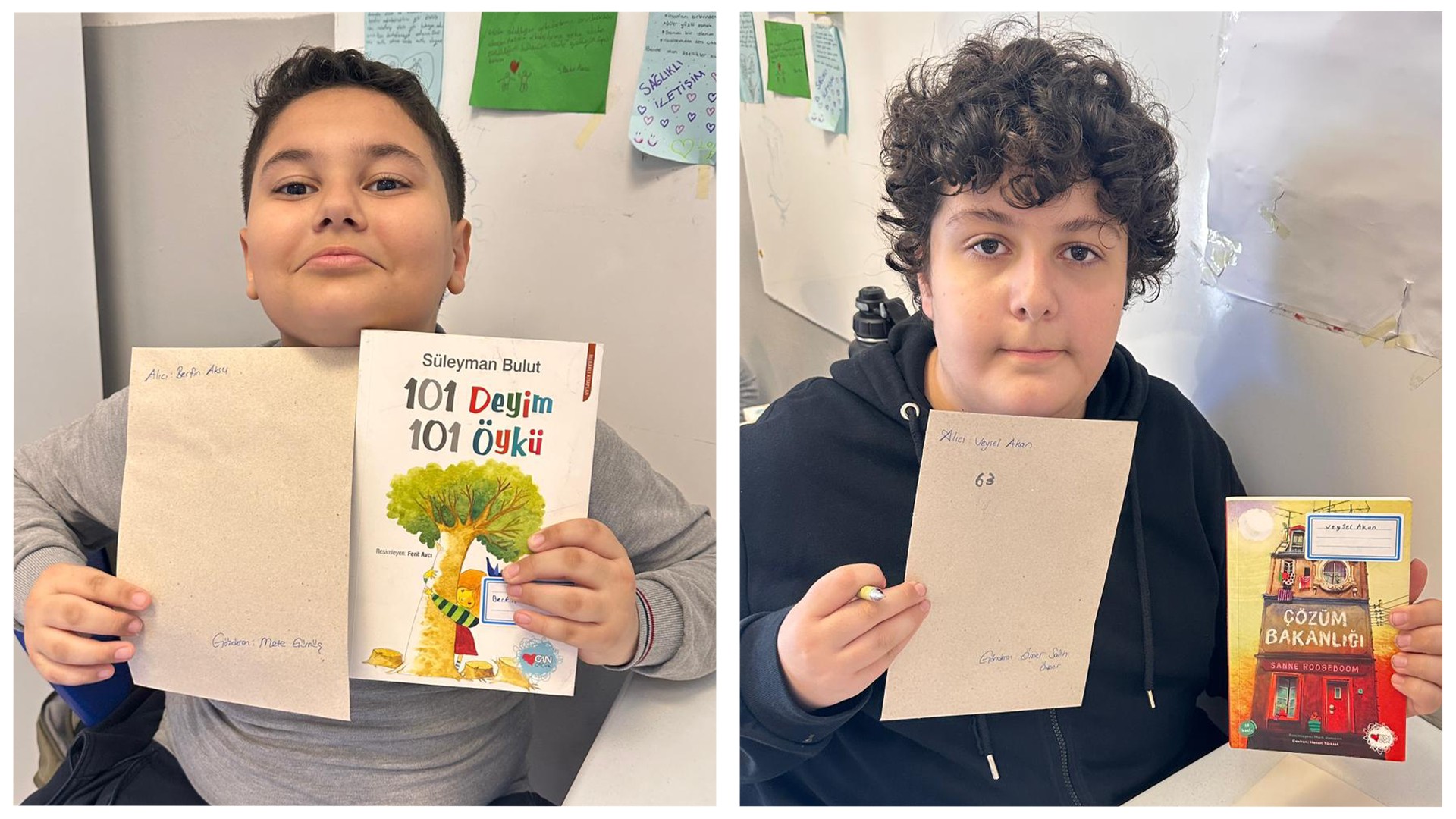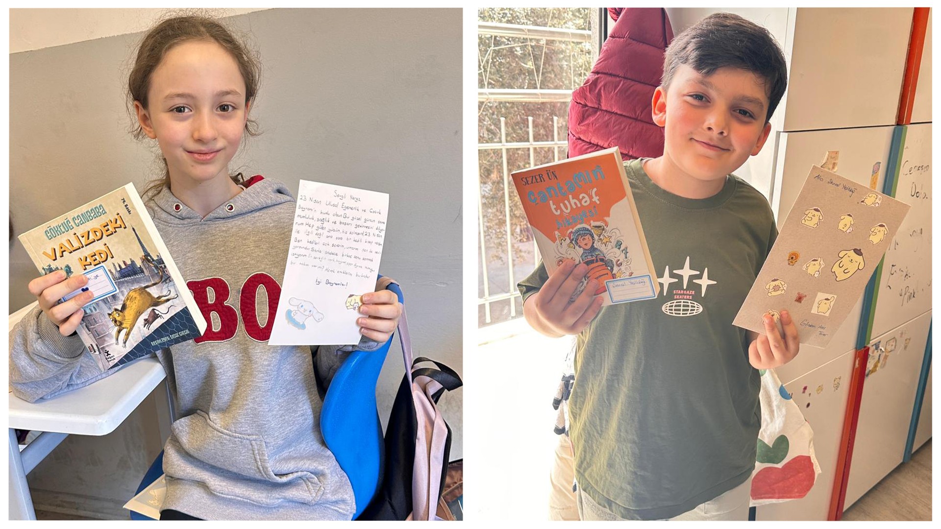 Kardeş okulumuzdaki arkadaşlarımız için içten duygularla kaleme aldığımız 23 Nisan kartpostallarımızı ve özenle seçtiğimiz kitapları sevgiyle yola çıkardık.