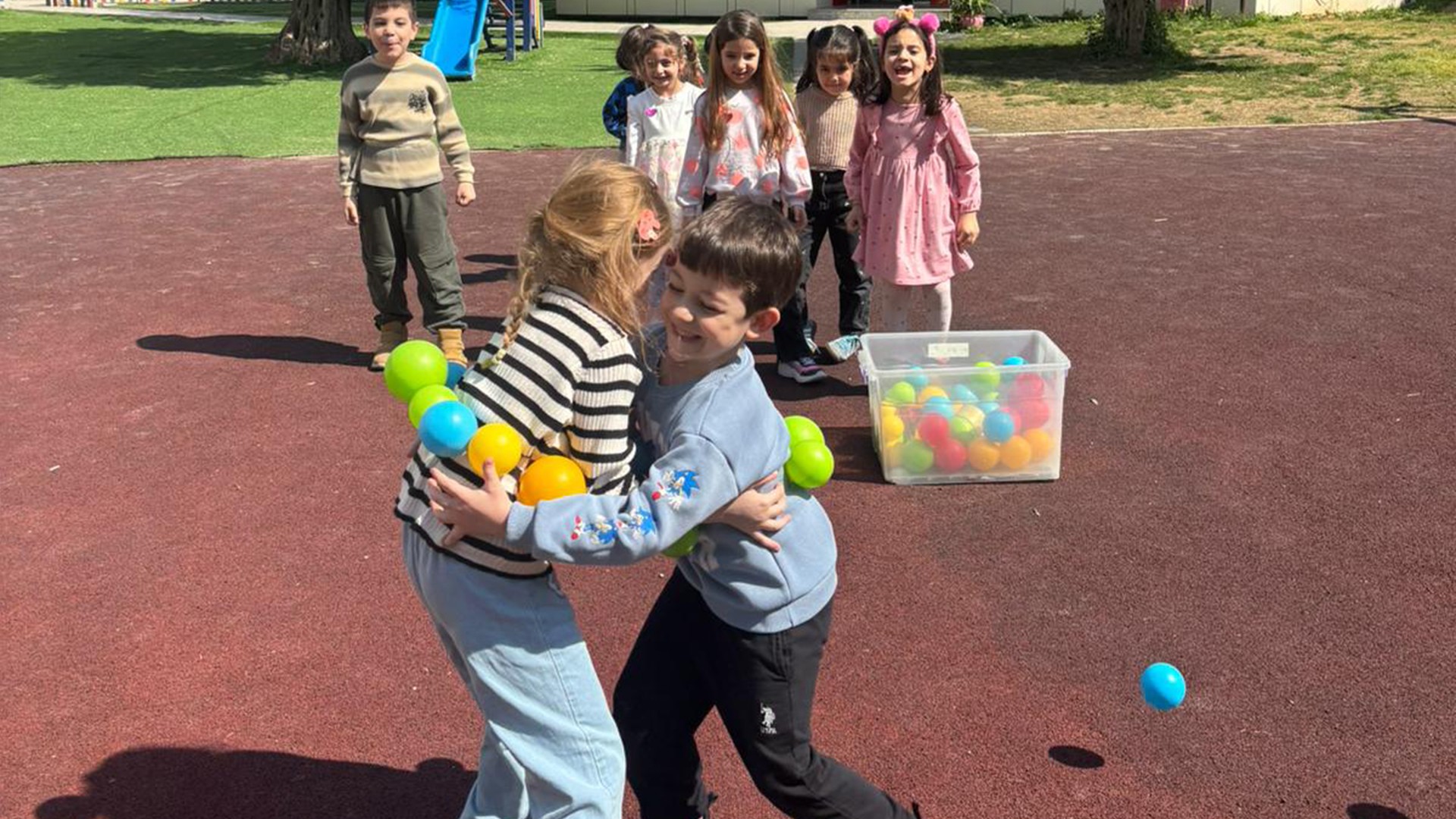 Kelebek Sınıfı, renkli toplarla eğlenceli bir oyun oynayarak güzel havanın ve baharın tadını çıkardılar. Rengarenk topları birbirlerinin üzerlerinden kahkahalar eşliğinde topladılar. Hoş geldin bahar.