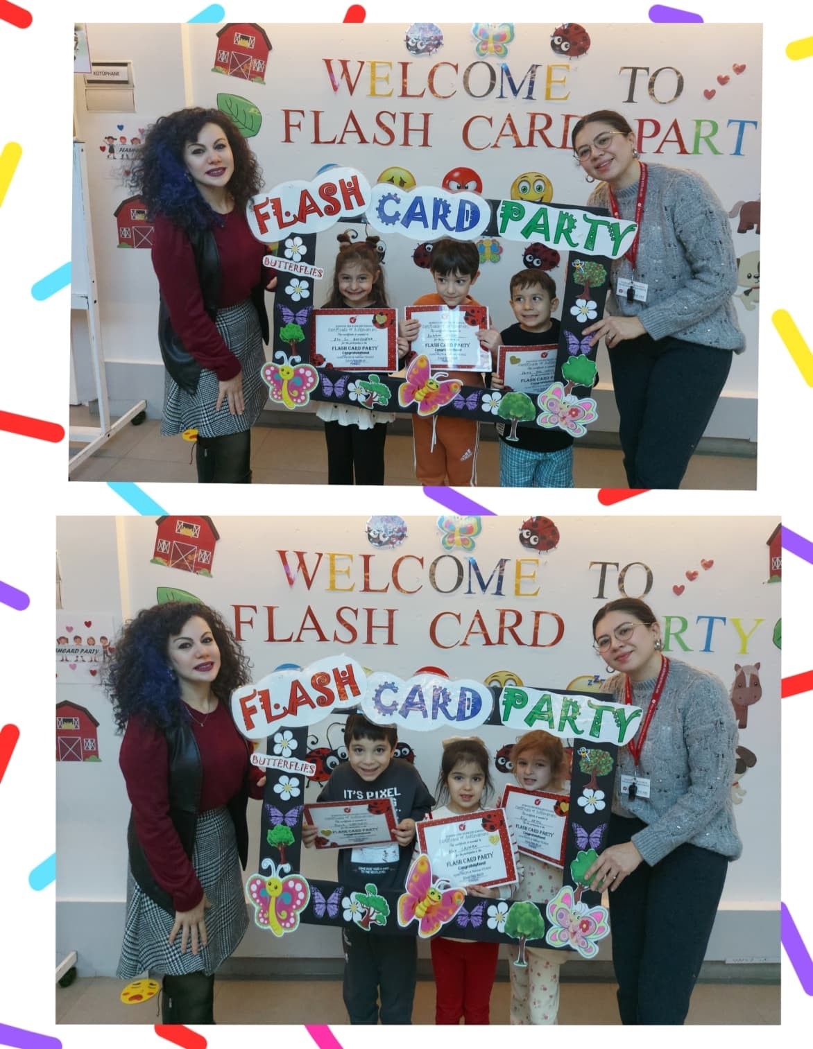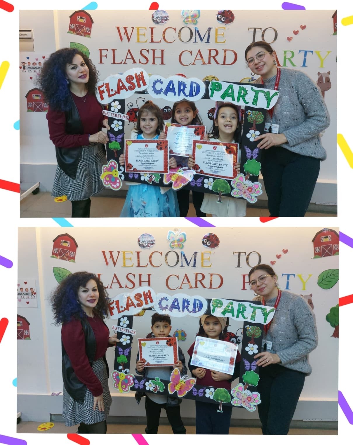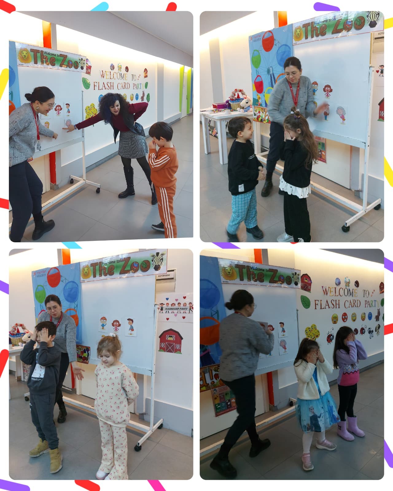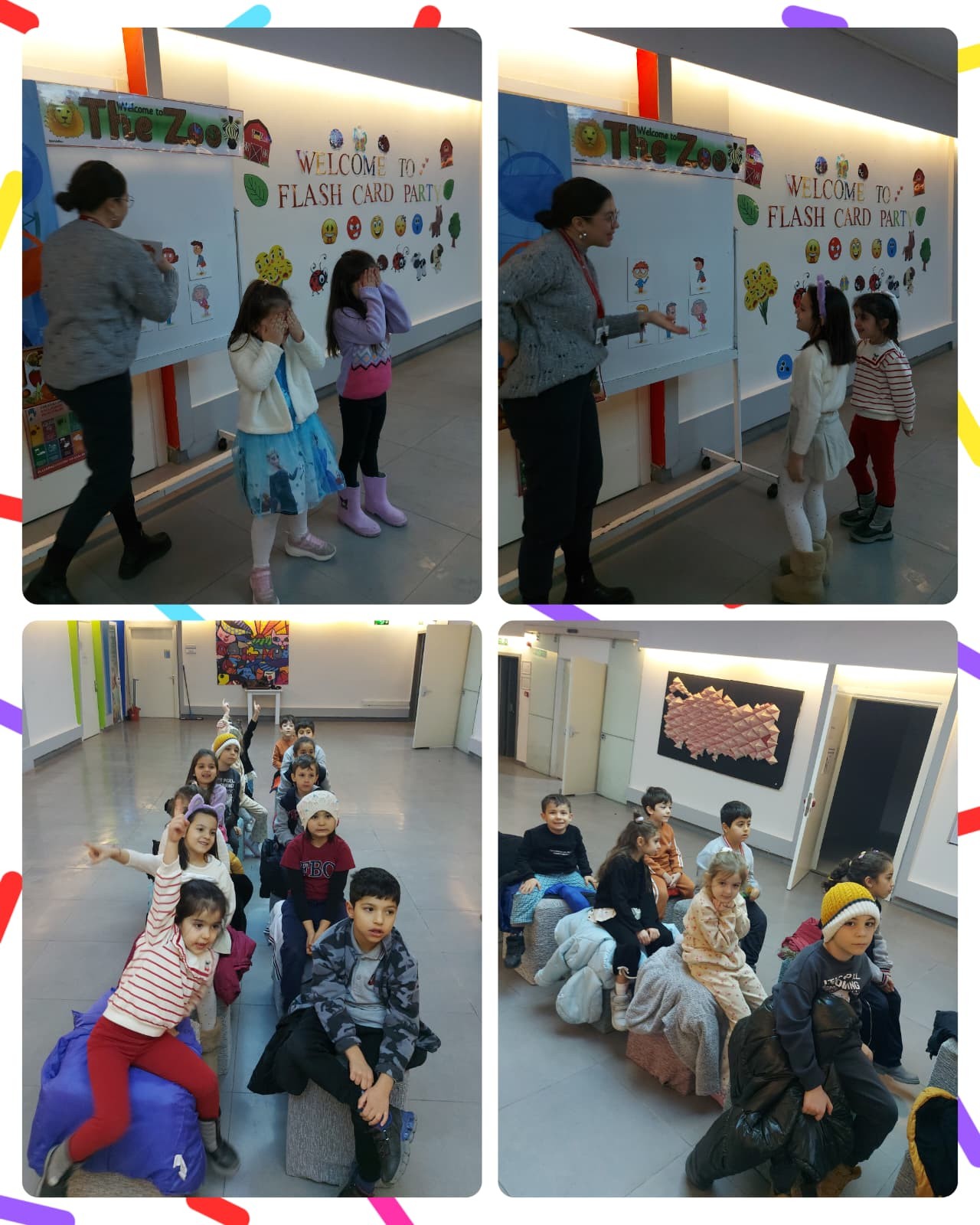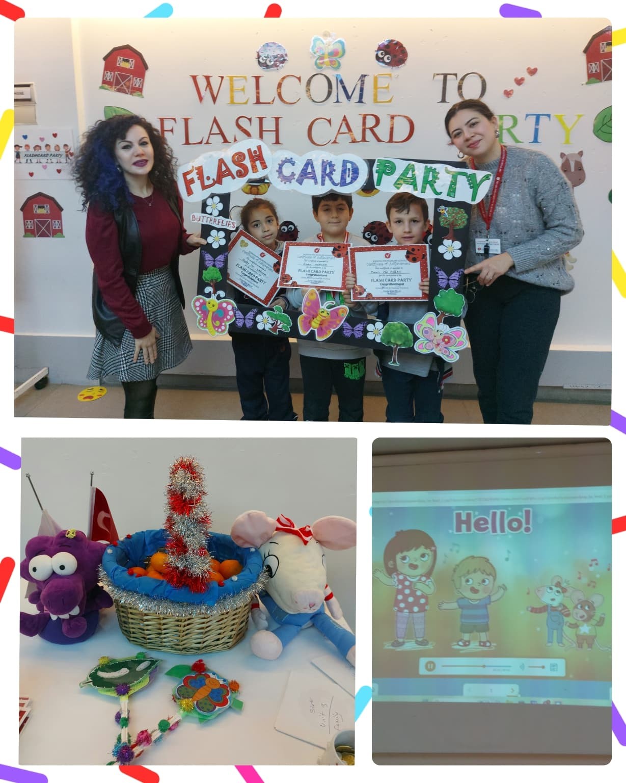 İngilizce dersi kapsamında Kelebek sınıfı ve 1-A sınıfı öğrencilerimizle birlikte Flashcard Party etkinliği gerçekleştirilmiştir. Etkinliğimizde, öğrencilerimiz derslerde işlenen konuları içeren eğitici ve öğretici kelime kartlarıyla çeşitli oyunlar oynamıştır. Böylece öğrencilerimiz sene başından itibaren öğrendikleri kelimeleri hem pekiştirmiş hem de eğlenceli vakit geçirmiş oldu. Etkinlik sonunda öğretmenleriyle birlikte şarkılar söyleyip dans ettiler.