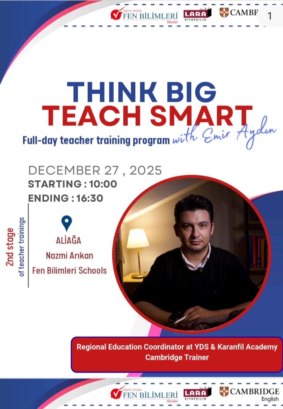 Nazmi Arıkan Fen Bilimleri Okulları olarak, “Think Big – Teach Smart” öğretmen eğitim programının ikinci aşaması 27 Aralık 2025’te, Aliağa Kampüsümüz ev sahipliğinde