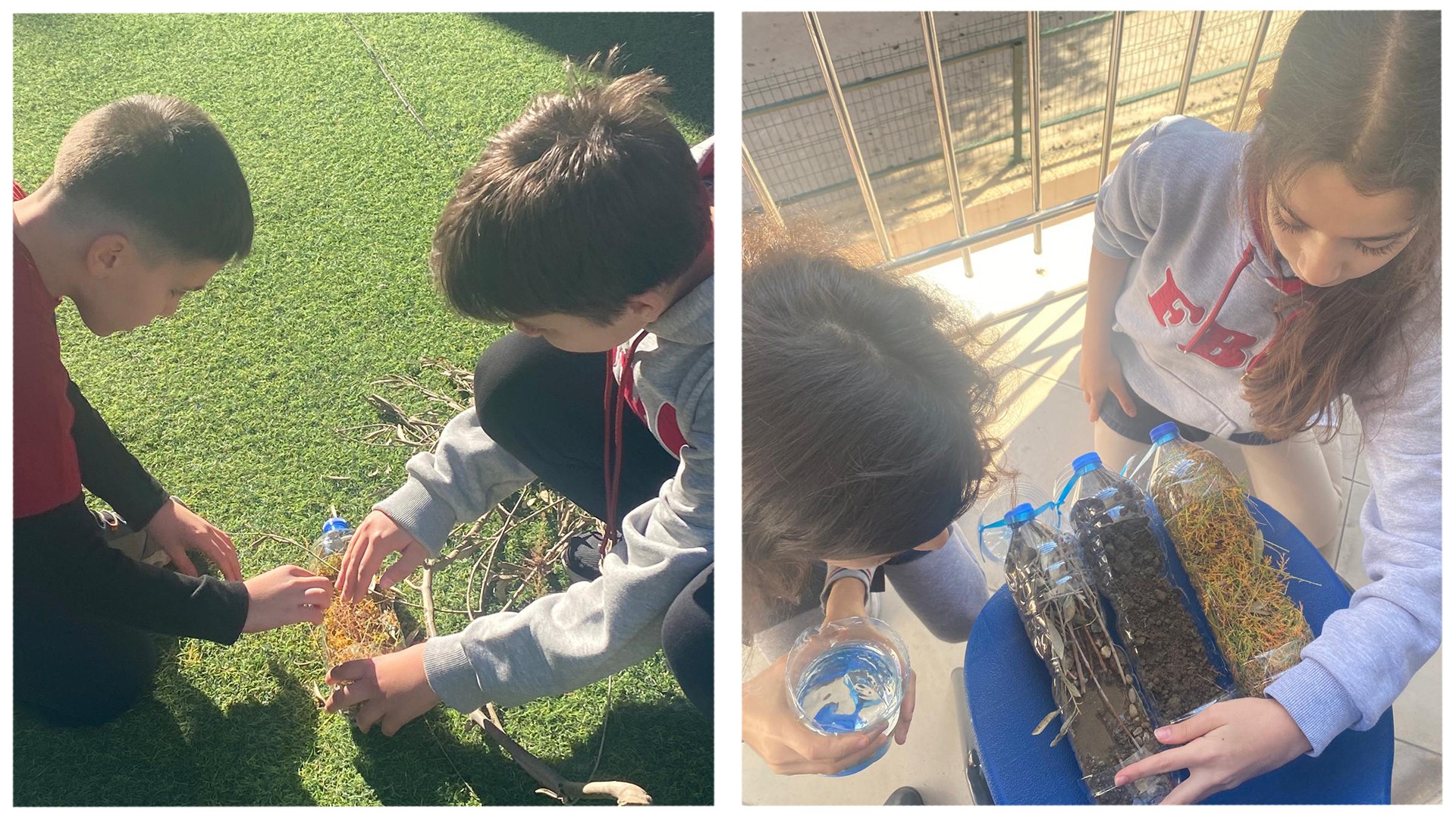 MEB kitabında yer alan su arıtma etkinliğini, bahçemizden topladığımız taşlarla uygulamalı olarak deneyimledik.