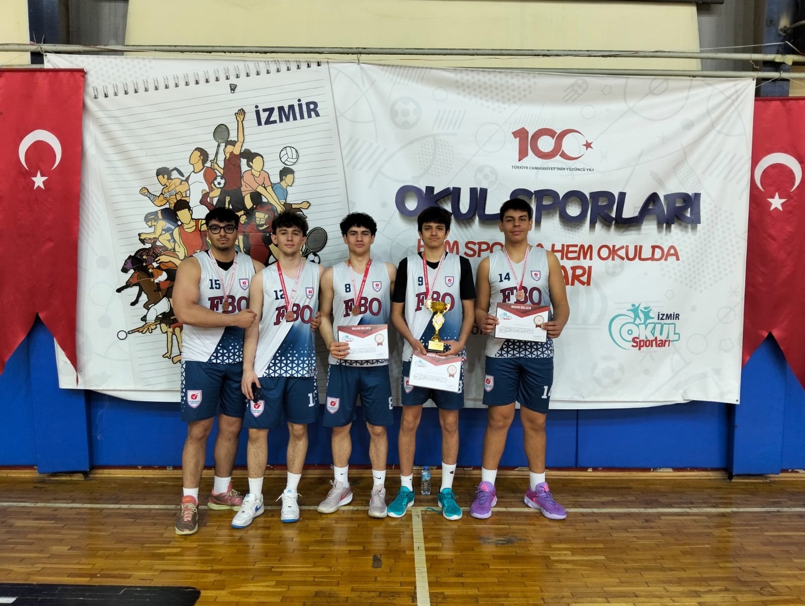 Okul Sporları 3*3 Basketbol Genç-A Erkek takımımız İl Birinciliği Müsabakalarında İzmir 4.sü olarak, Türkiye Şampiyonasında okulumuzu ve İlimizi temsil hakkı kazanmıştır. Öğrencilerimizi tebrik eder, başarılarının devamını dileriz.